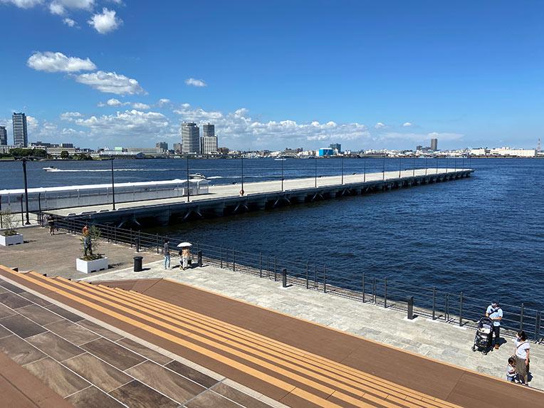 |モノレールに乗った後、スタバでコーヒーを買い海が見えるデッキへ